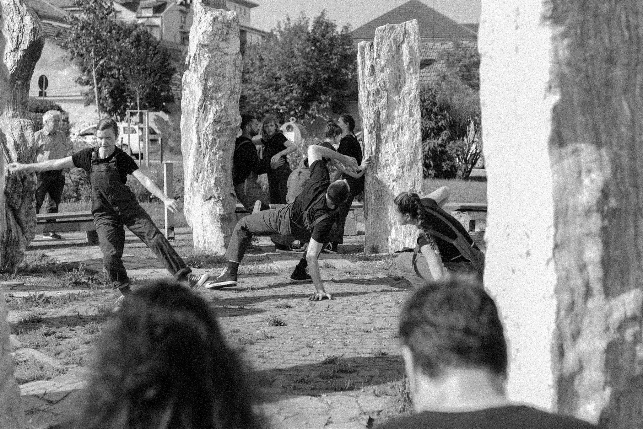 Irina Marinescu a susținut două activități în cadrul rezidenței (burn)OUT: Atelier de dans contemporan și Prezentarea cercetării artistice.
